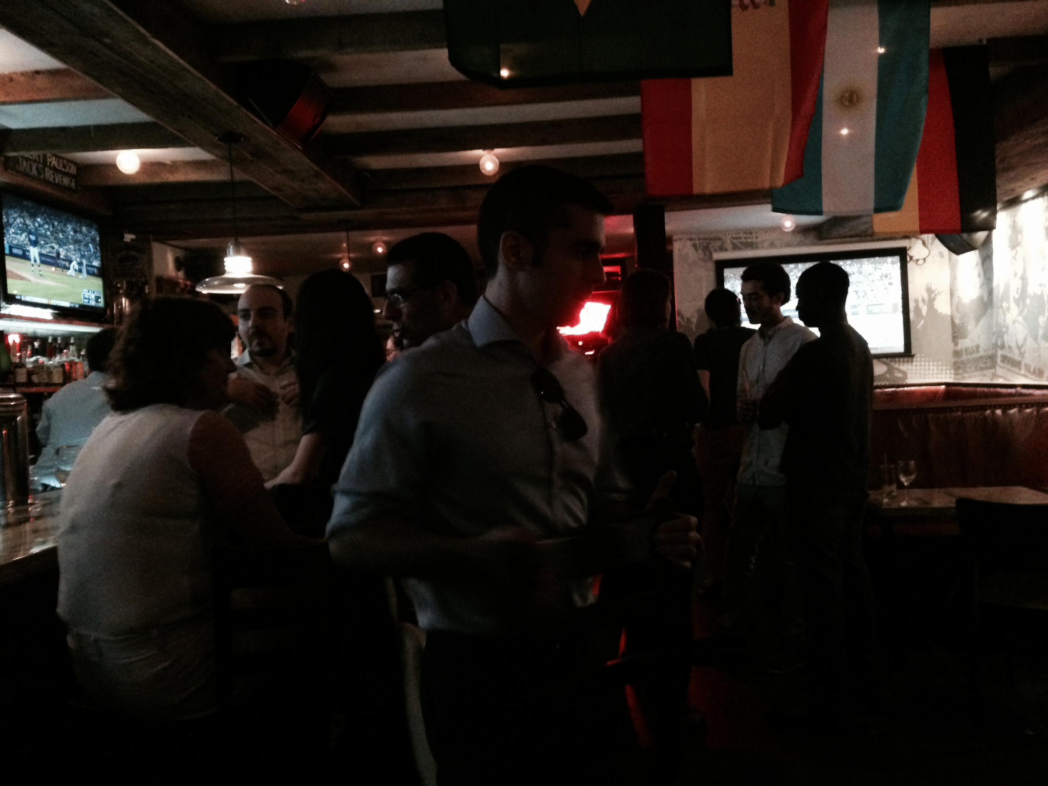 On Monday I attended my second French meetup since starting this blog. I met: a German radiologist, an Iranian realtor, a Parisian teacher/vintage clothing seller, a Lyonnaise digital marketer, a Chinese woman whose occupation I did not catch, and an American artist/art history professor. Quite an eclectic gathering. The flag garlands hanging from the ceiling for the World Cup heightened the international effect. (Hazy, nondescript proof of attendance above.)