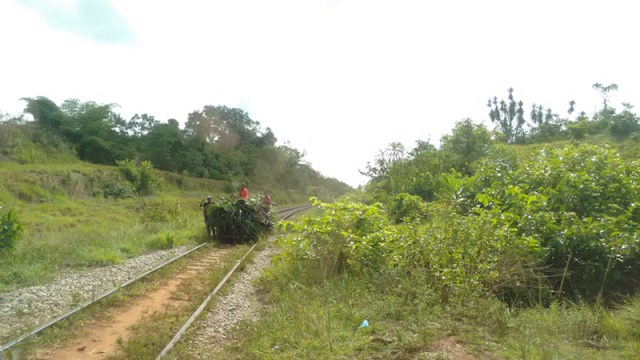 These people were using the defunct rail line for transport of their retrofitted “train car.”