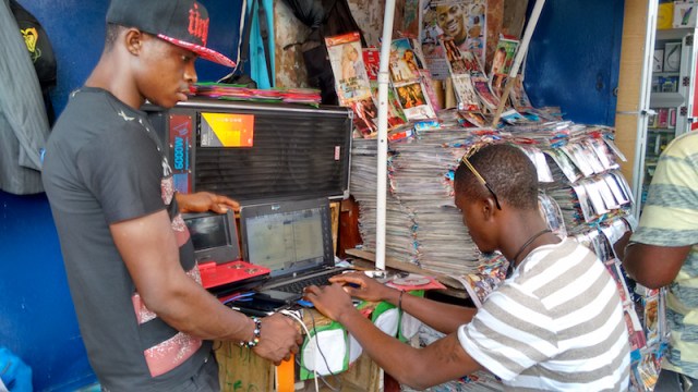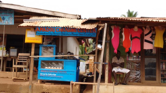 Another problem: lack of electricity. There isn’t much, if any, power grid outside of Monrovia. Everything seemed to be operated by generators, which, due to the expense of fuel, were only used at certain times and in certain places. So, people come to charging stations like this one to recharge their phones.