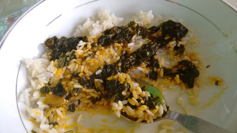 I ate a lunch of rice and greens picked from a nearby field.