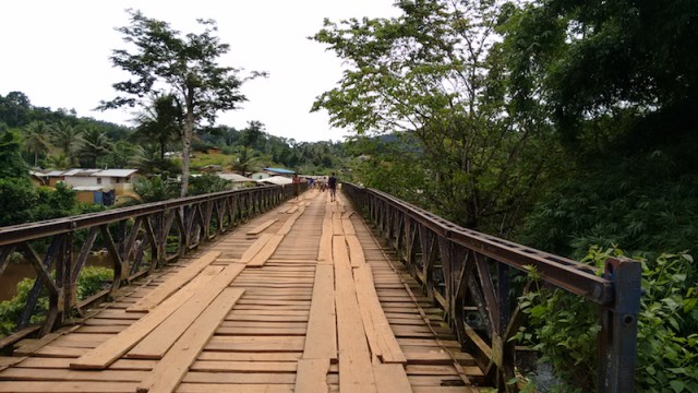We traversed the ricketiest of bridges, like the one above and the one below, which was in such bad shape that we had to walk over while the car and driver went solo, jostling the logs out of place as the wheels rolled over them.