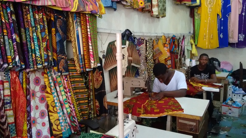 Here is the shop where I ended up buying fabric that I noticed is from the same place as some of the fabric I bought in Senegal: China. (I also bought some supposedly-Liberian masks for my brother-in-law only to have another vendor tell me they were actually from Ghana.)