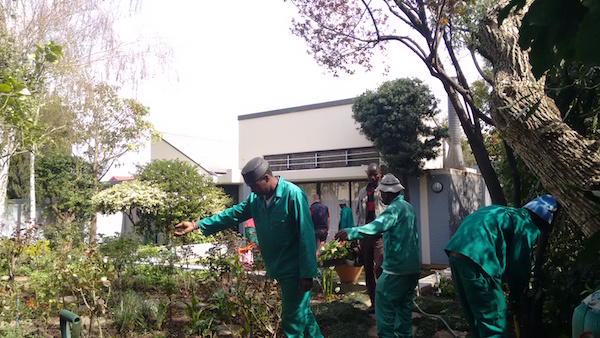 Then we walked down Vilakazi Street, on which both Nelson Mandela and Desmond Tuti once lived. Tutu’s house in not open to the public (it was having work done on it when we passed by so I took a quick peek in)…