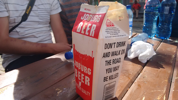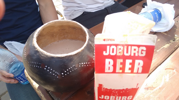 Instead of going into the house we sat down on benches not far from it to eat supposedly classic South African street meat-type fare and drink Jo’burg beer.