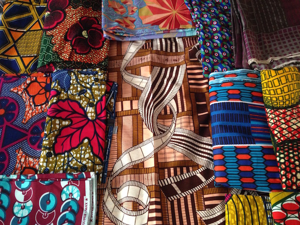 The photo above is of all the wax fabric I’ve accumulated during my sojourn in West Africa. Ready-to-wear, non-secondhand clothing stores are really few and far between in this region, and what people do instead is buy fabric and take it to a tailor with a photo of the sort of thing they want made. The tailor creates the custom order for a fraction of what it would cost in the United States.