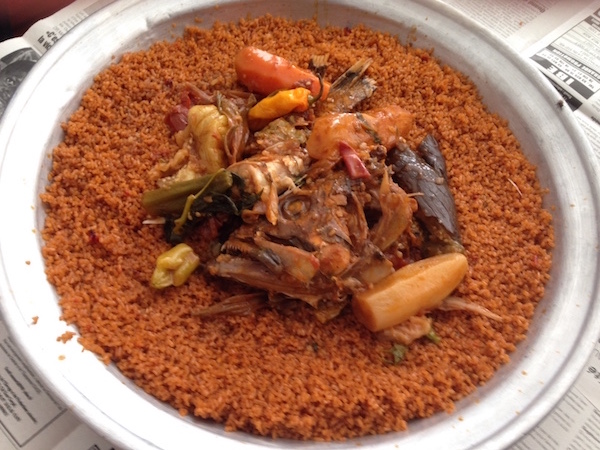 [P.S. I guess I forgot to take pics of yassa poulet and thiof… So all the photos in this post are mine, except for the yassa pic, which comes from this website, and the thiof pic, which was uncredited on TripAdvisor.]