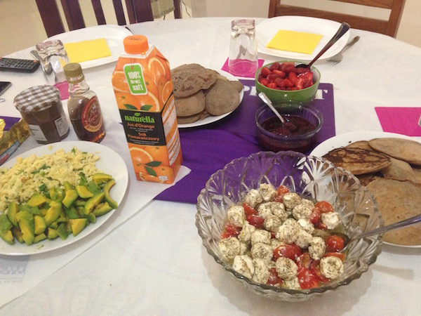 One morning I made them a brunch of scrambled eggs, gluten-free pancakes practically fried in butter and topped with maple syrup, and tomatoes tossed with balls of labneh (which is a Lebanese cheese that comes fairly close to cream cheese). The family thanked me, but my stomach did not. It felt heavy for days afterwards.