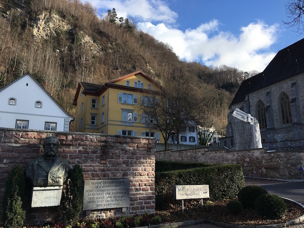 I will conclude this post with some (more) pix from my one hour wandering around the teeny capital city of Vaduz in Liechtenstein. (“More” because the three pictures above are also from there.) You might think one hour in a country is not enough to get a sense of it. But considering that Liechtenstein is 62 square miles and that I took a thirty minute bus ride into the city from Switzerland and a thirty minute bus ride out of it to Austria, I actually saw quite a large portion of it.
