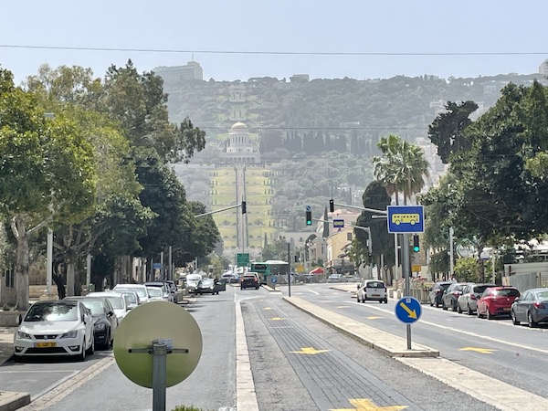 When I took the train back to Haifa, my cousin was supposed to pick me up and we were going to visit the famous Bahai Gardens together. Instead, I took a picture of the gardens as we drove past them on the way to the E.R. Wah wah.